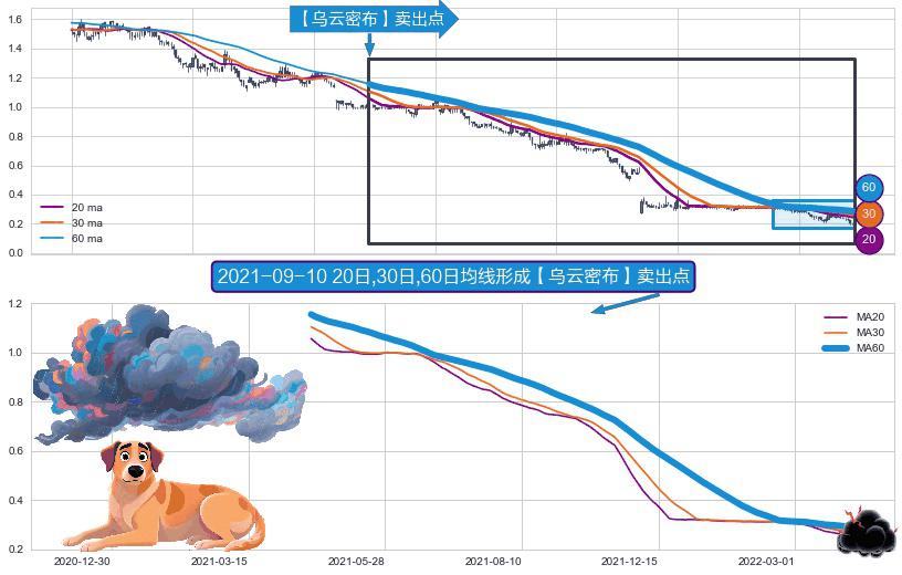 ⚀ 2021-04-20日-2022-03-31日显现 20日-30日-60日均线 【乌云密布】卖出点 看空信号,后市看跌,卖出