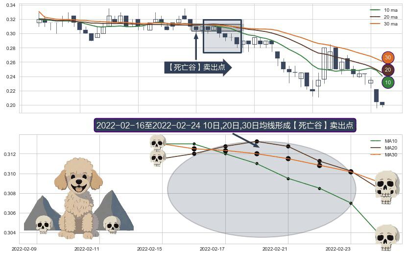 ⚀ 2022-02-17-日至2022-02-24-日显现 10日-20日-30日均线 【死亡谷】卖出点 看空信号,后市看跌,卖出