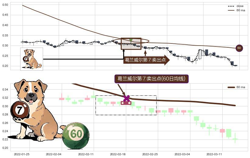 ⚀ 2022-02-18-日显现 葛兰威尔均线 60日均线 第⑦卖出点 下降趋势的中继信号,后市看跌,卖出信号