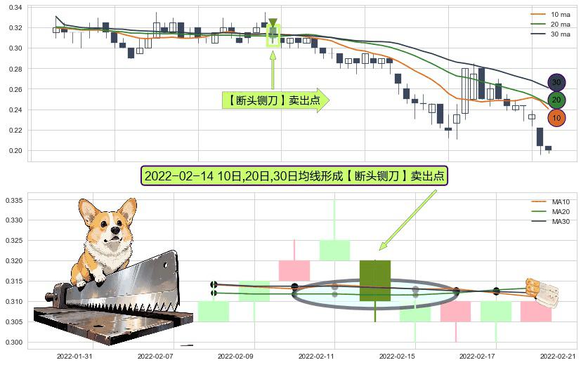 ⚀ 2022-02-14日显现 10日-20日-30日均线 【断头铡刀】卖出点 看空信号,后市看跌,卖出
