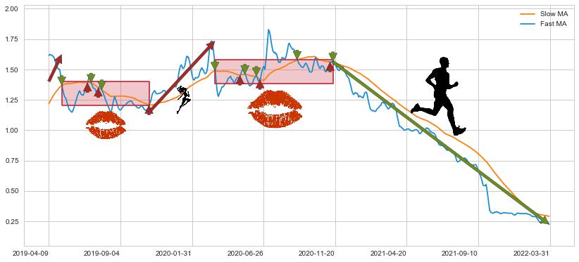 2020-11-17至2022-03-31 慢线与快线呈空头排列, 慢线与快线接触少,无缠绕