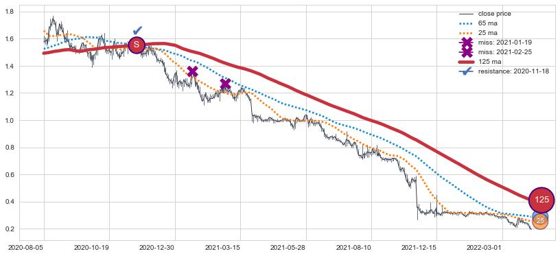 ⚄ 价格在均线遇到阻力后已再次向下回落了【极长】距离, 第⑦卖出点 阻力效果得到【明确确认】