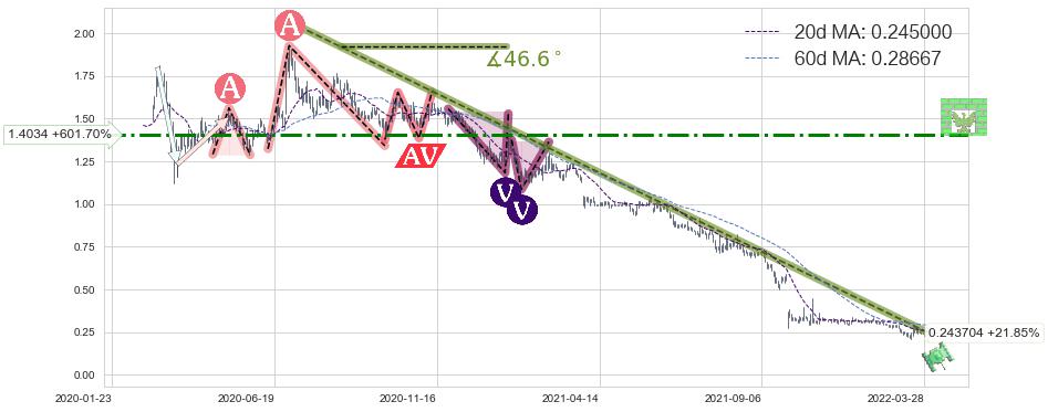🦴 长线均值回复组合短线趋势跟踪[强阻力信号]2020-07-06-2022-03-31下跌趋势依然成立(下跌趋势跟踪依然存在),短线价格略微上行反弹(均值回复猜想),即将接近下跌趋势提供的未破位阻力价格:0.243704。