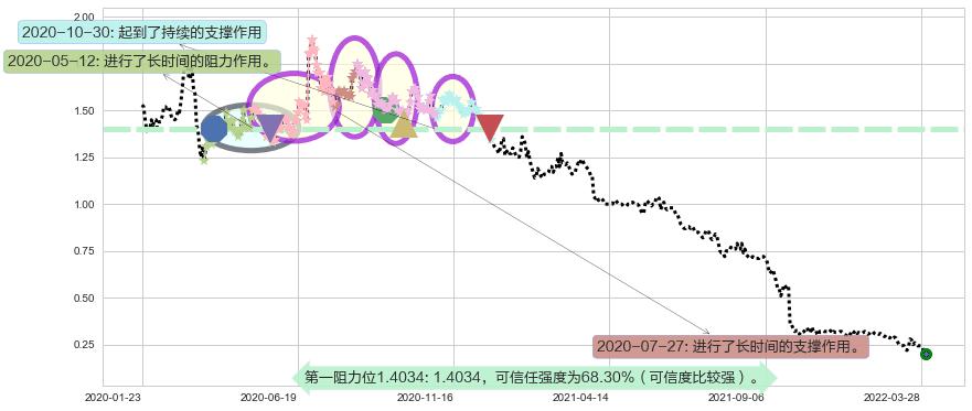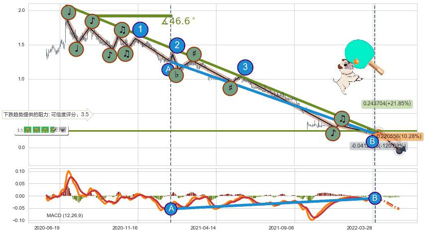 ♘ 在最后的下跌阶段2020-07-06至2022-03-31,存在 持续未破位的阻力位 ,阻力价格0.243704,可信任强度81.16%,其距离最后价格0.200000相差 +21.85%