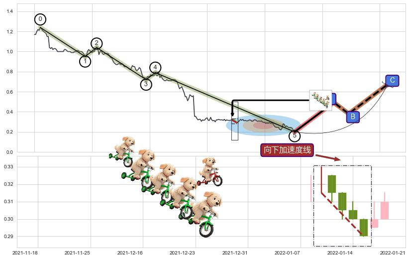 ➣ 循环浪继续向下【平均值】位置(2023-05-01, -0.0911822),匹配聚类样本比例42.02%, 可能性概率8.79%