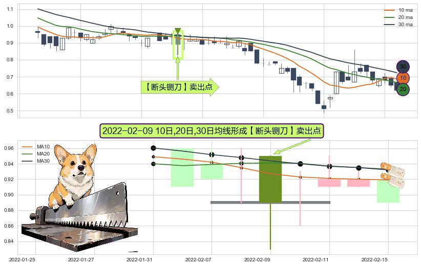 形态多维评估: ⚀ 2022-02-09日显现 10日-20日-30日均线 【断头铡刀】卖出点 看空信号,后市看跌,卖出