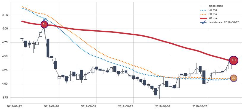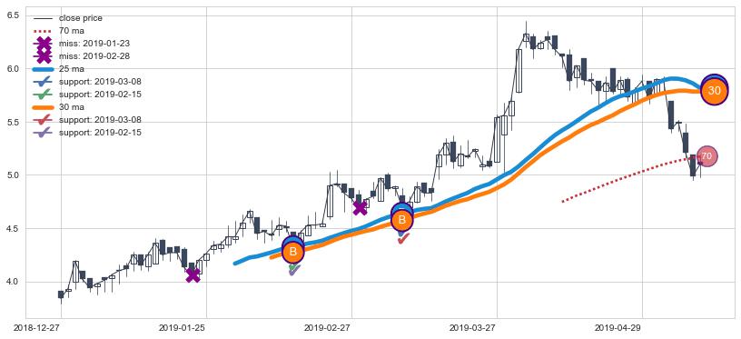上涨趋势2018-12-27-2019-05-10,均线25, 30确认关键支撑2处
