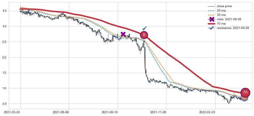 下跌趋势2021-03-24-2022-03-31,均线70确认关键阻力1处