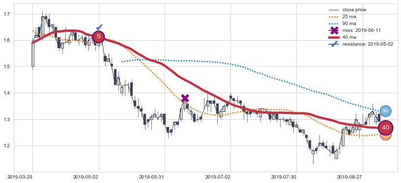 下跌趋势2019-03-29-2019-09-03,均线40确认关键阻力1处