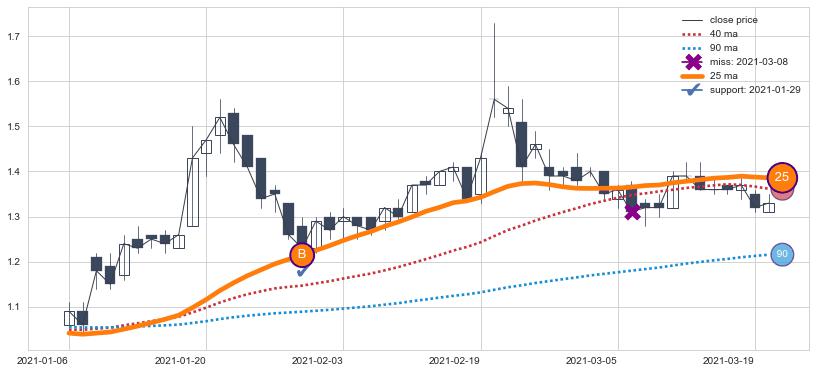 上涨趋势2021-01-06-2021-03-22,均线25确认关键支撑1处