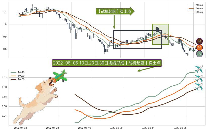 形态多维评估: ⚀ 2022-05-06日-2022-07-04日显现 10日-20日-30日均线 【战机起航】卖出点 看空信号,后市看跌,卖出