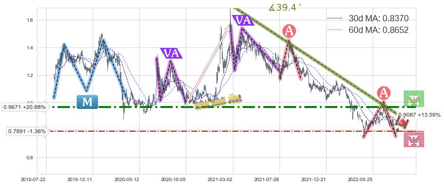 ♘ 阻力价格位0.9671,可信任强度81.42%,距离最后交易2022-08-12形成的收盘价格0.8000相差 +20.88%