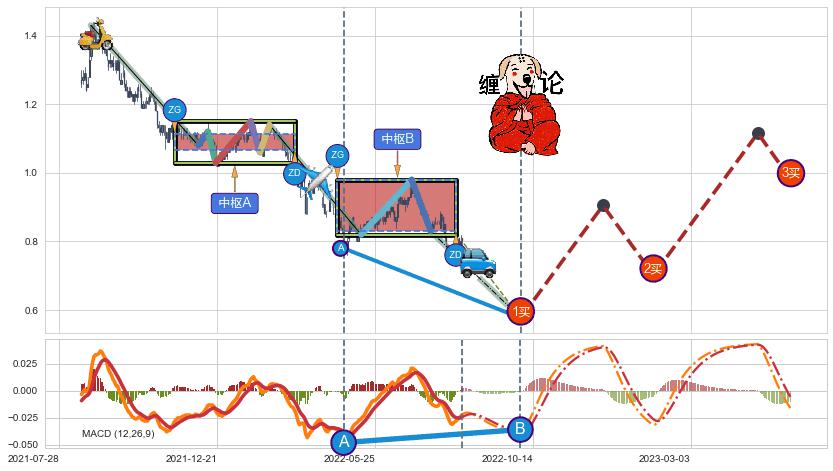 ➢ 【中枢B】:2022-05-12-2022-07-15,中枢由3笔构成,共45交易日, ZG=0.9800, ZD=0.8300