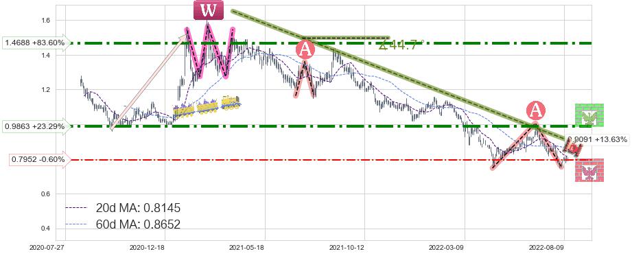 ♘ 阻力价格位0.9863,可信任强度83.14%,距离最后交易2022-08-12形成的收盘价格0.8000相差 +23.29%