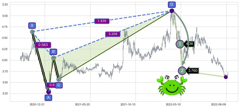 ➣ 已完成【螃蟹】形态起点X: 2020-11-11, 终点D: 2022-02-10, 共309交易日