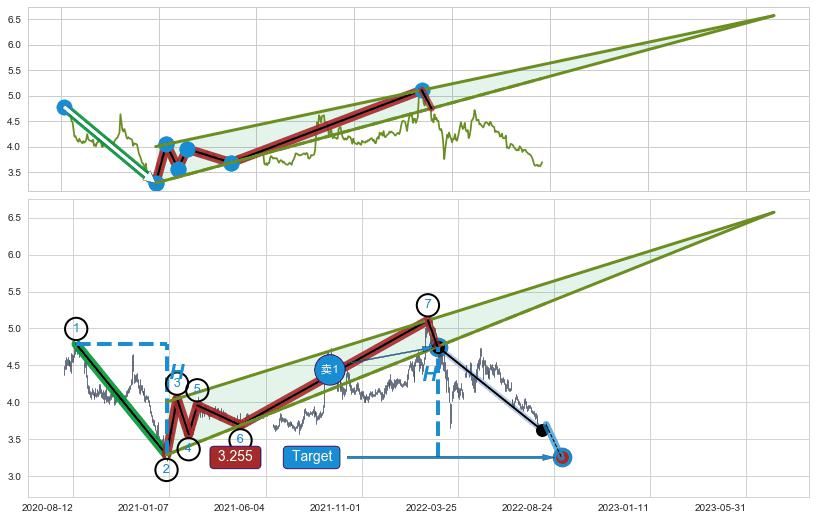 ➣ 2022-03-15到达第❷价格目标位置3.760