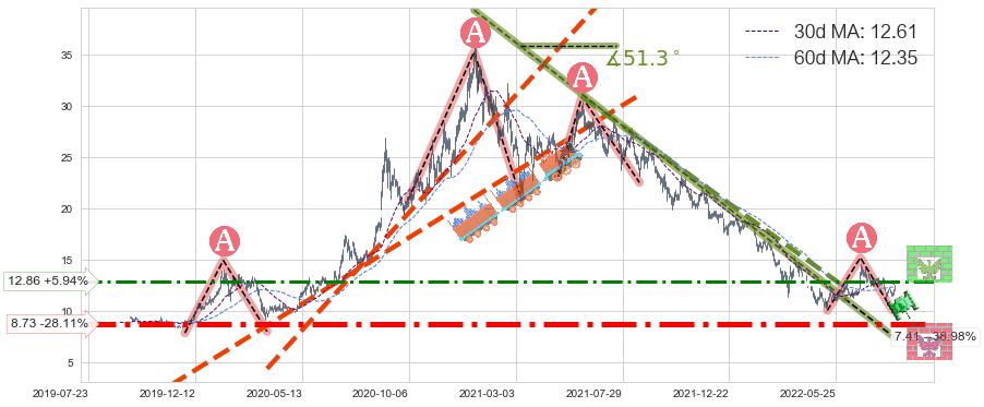 ➣ 【仅预测突破】最后价格:12.14与预测突破价格:14.78→【空间较大】后续最小【反转】第一目标价格→(2022-10-10: 19.20 )