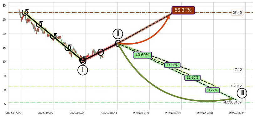➣ 大趋势循环浪继续向下概率43.69%