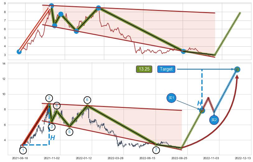 ➣ 最小中继整理涨幅→𝐇: 5.38 (𝐇旗杆的长度:旗杆起点→顶点)
