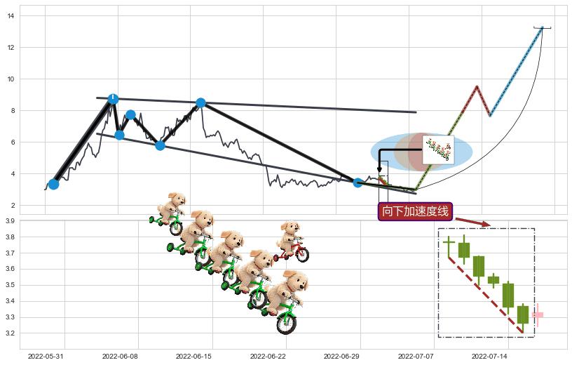 从2022-01-03至2022-08-11,共包含148个交易日,阶段股价下跌-95.12%,阶段股价变动位移路程比: 1 : 4,下跌趋势角度: 44.6