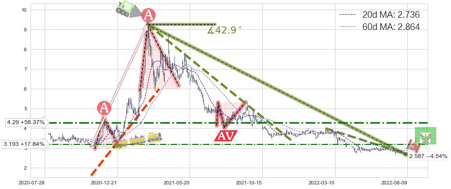 ♘ 阻力价格位4.29,可信任强度60.62%,距离最后交易2022-08-12形成的收盘价格2.710相差 +58.37%