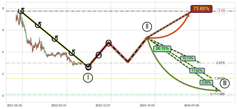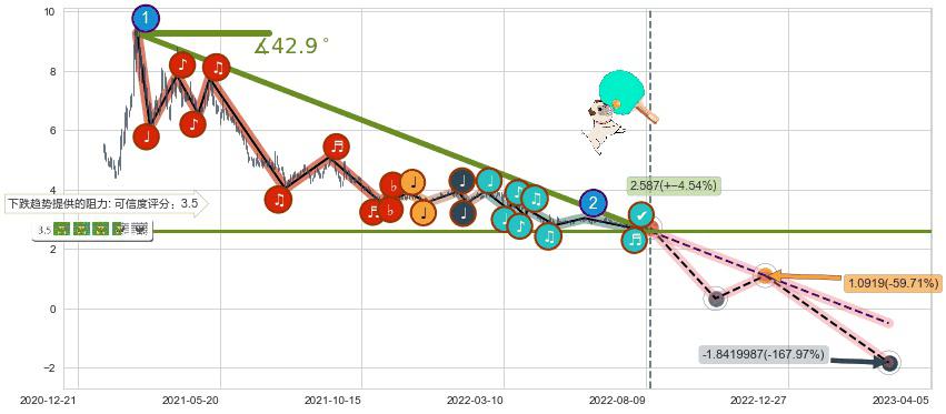 ♘ 在最后的下跌阶段2021-02-23至2022-08-12,存在 破位边缘的阻力位 ,阻力价格2.587,可信任强度80.86%,其距离最后价格2.710相差 -4.54%