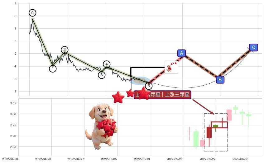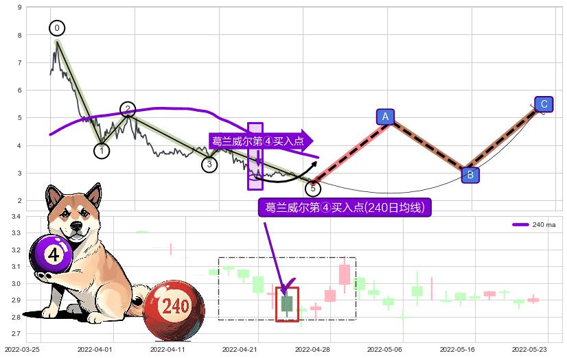 ➢ 收盘价(2022-05-17: 2.950 )→再次回踩→第一根k线低点(2022-05-05: 2.840 )
