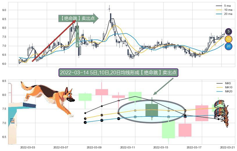 ⚀ 2022-03-14日显现 5日-10日-20日均线 【绝命跳】卖出点 看空信号,后市看跌,卖出