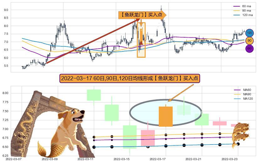 ⚀ 2022-03-17日显现 60日-90日-120日均线 【鱼跃龙门】买入点 看多信号,后市看涨,买入