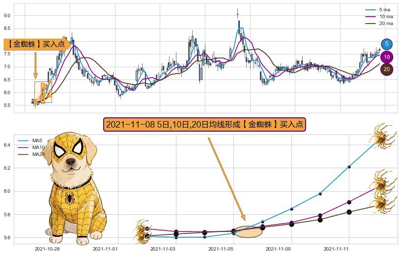 ⚀ 2021-11-08日显现 5日-10日-20日均线 【金蜘蛛】买入点 看多信号,后市看涨,买入