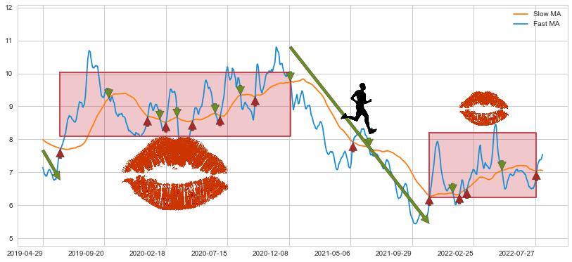 2021-11-11至2022-07-29 慢线与快线多次接触,存在上下穿越,有缠绕