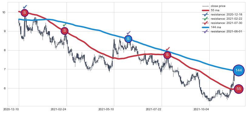➣ 历史趋势中共发现5处重要支撑阻力位,其中关键支撑位0处, 关键阻力位5处