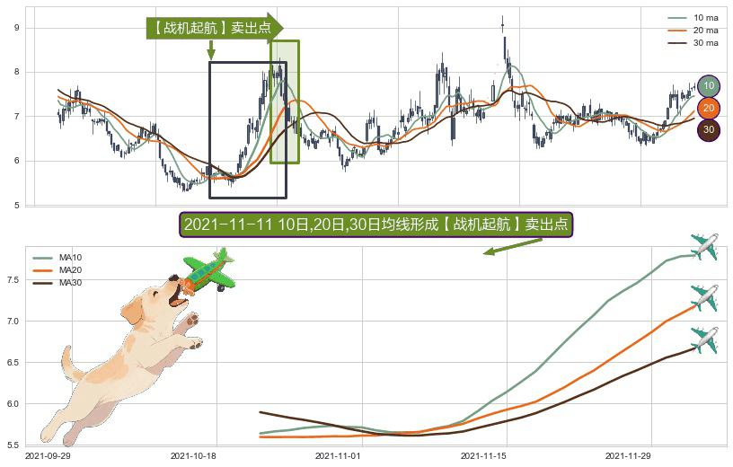 ⚀ 2021-10-21日-2021-12-02日显现 10日-20日-30日均线 【战机起航】卖出点 看空信号,后市看跌,卖出