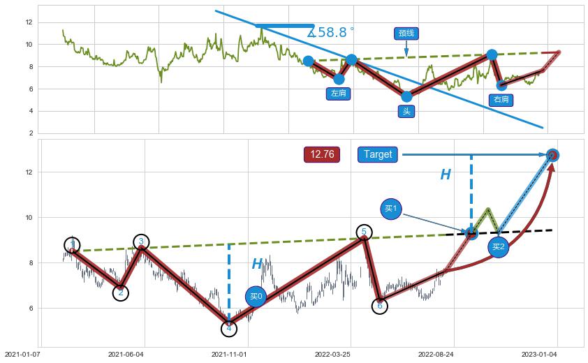 ➣ 最小反转涨幅→𝐇: 3.478 (头部与颈线垂直距离)