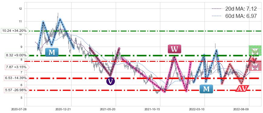♘ 阻力价格位8.32,可信任强度89.78%,距离最后交易2022-08-12形成的收盘价格7.63相差 +9.00%
