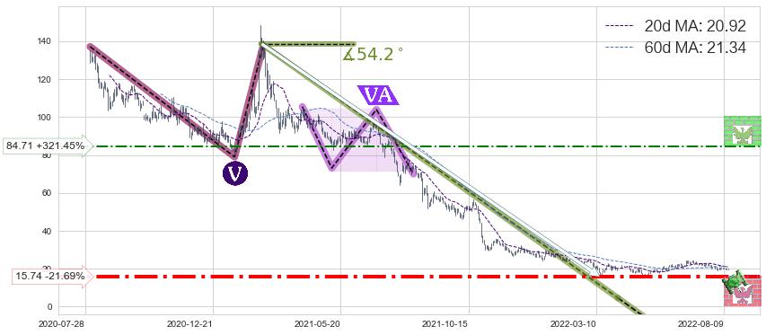 ♘ 支撑价格位15.74,可信任强度73.95%,距离最后交易2022-08-12形成的收盘价格20.10相差 -21.69%