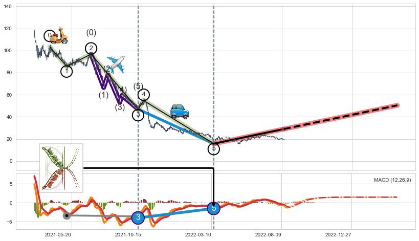 ➣ 第三,五驱动浪端点:【MACD】走势出现【常规背离 & 反转信号】背离程度63.73%,背离夹角角度93.1˚,背离程度较大