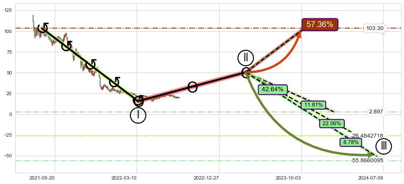 ➣ 大趋势循环浪继续向下概率42.64%