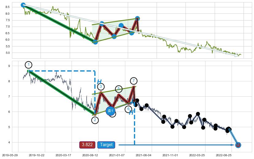 ➣ 最小中继整理跌幅→𝐇: 2.850 (𝐇旗杆的长度:旗杆起点→顶点)