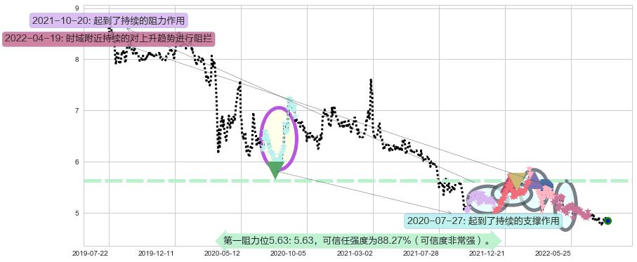 ♞ 第一阻力位5.63价格为5.63,其通过量化计算出的可信任强度为88.27%(可信度非常强)。