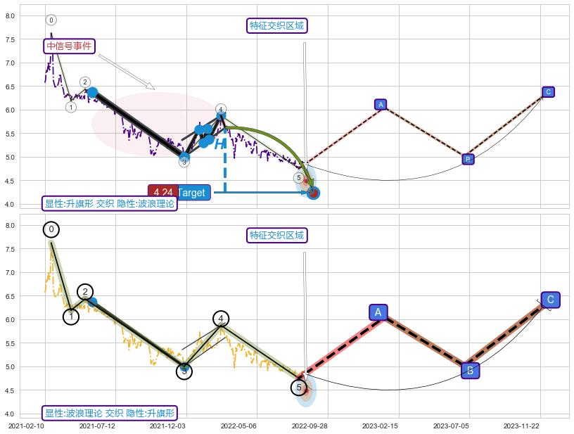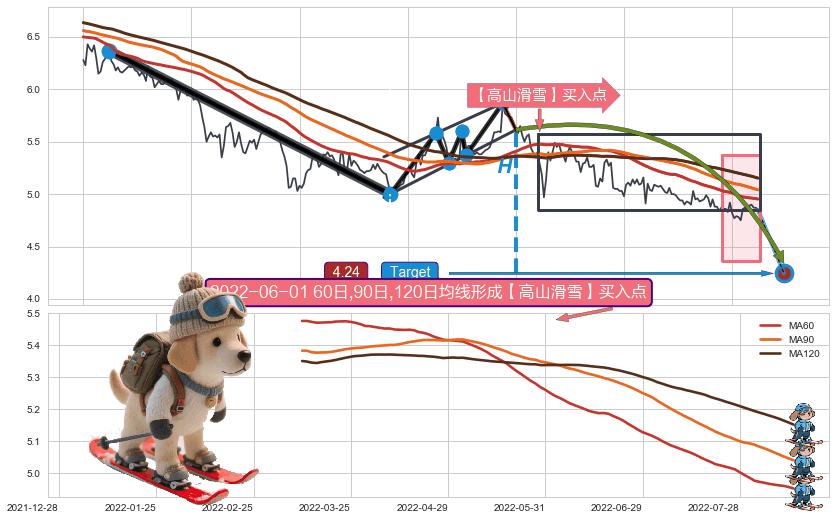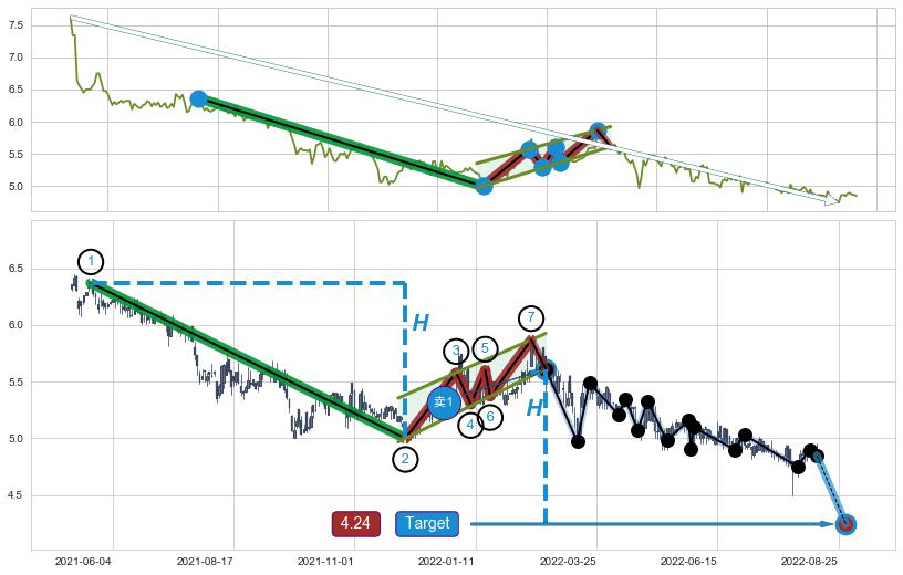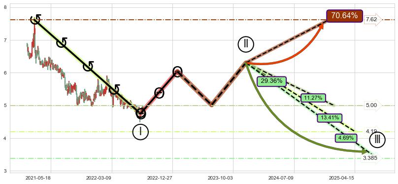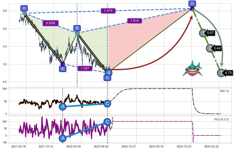 ➣ D点拟合预测价格6.56,距离最后交易收盘价格4.85相差 +35.30%