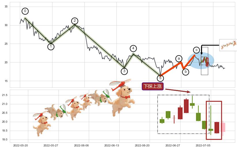 ➢ 低点影线(2022-03-18: 17.22 )→回踩→第二根k线低点(2022-03-17: 17.70 )
