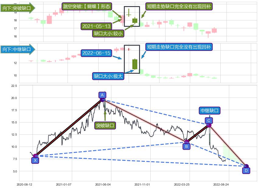 ➢ 【蝴蝶】形态 🔜 中继缺口 🔜 突破缺口 综合量化分数:46.18 【偏空】