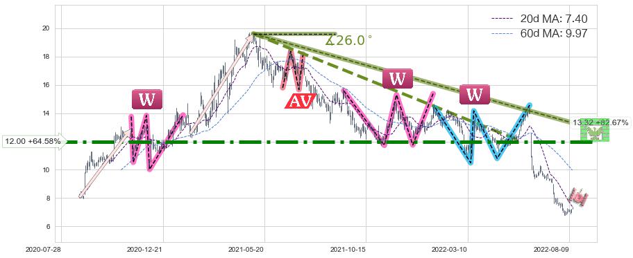 ♘ 阻力价格位12.00,可信任强度85.77%,距离最后交易2022-08-12形成的收盘价格7.29相差 +64.58%