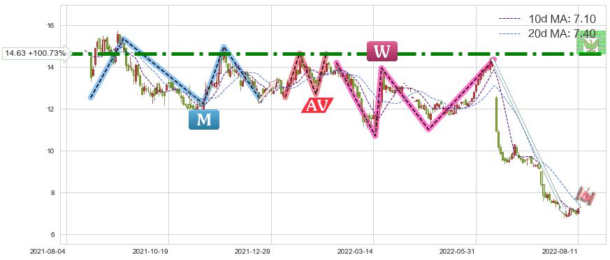 ♘ 阻力价格位14.63,可信任强度99.74%,距离最后交易2022-08-12形成的收盘价格7.29相差 +100.73%