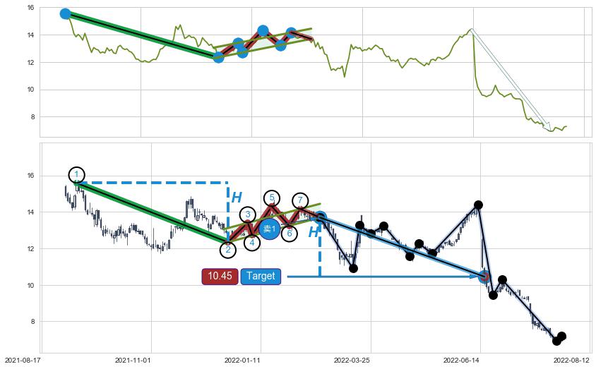 ➣ 最小中继整理跌幅→𝐇: 3.240 (𝐇旗杆的长度:旗杆起点→顶点)