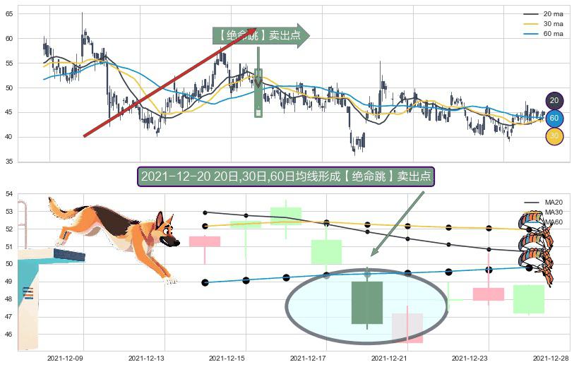 ⚀ 2021-12-20日显现 20日-30日-60日均线 【绝命跳】卖出点 看空信号,后市看跌,卖出