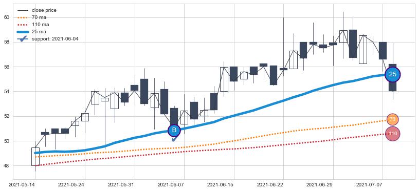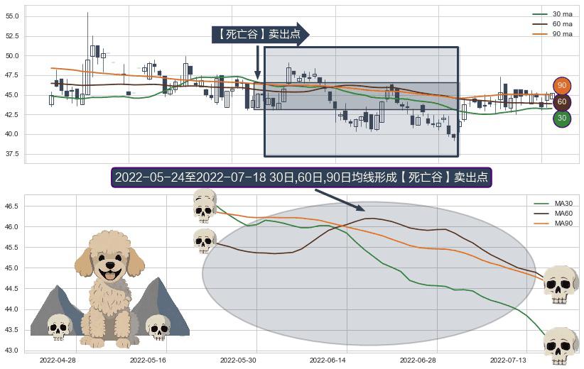 ⚀ 2022-05-25-日至2022-07-18-日显现 30日-60日-90日均线 【死亡谷】卖出点 看空信号,后市看跌,卖出