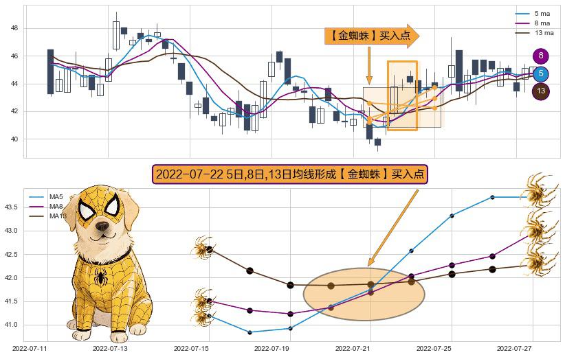 ⚀ 2022-07-22日显现 5日-8日-13日均线 【金蜘蛛】买入点 看多信号,后市看涨,买入