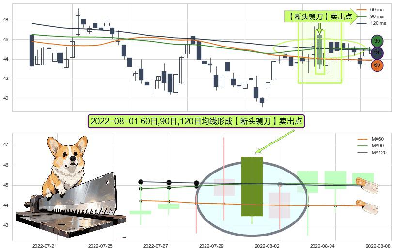 ⚀ 2022-08-01日显现 60日-90日-120日均线 【断头铡刀】卖出点 看空信号,后市看跌,卖出